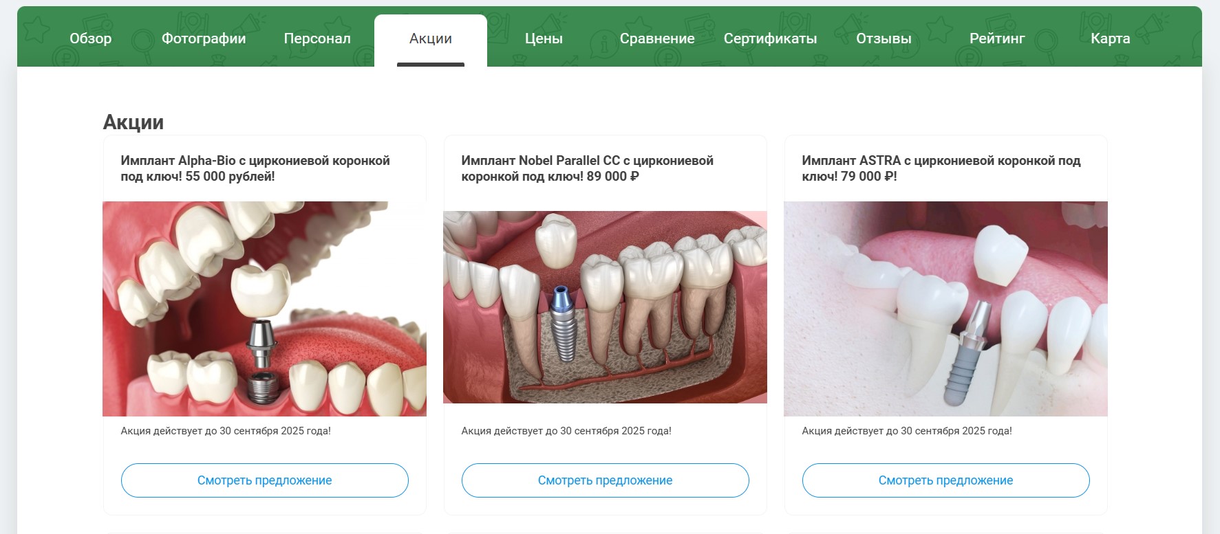 Объявления — это текстовые блоки с акциями, которые показываются на страницах метро, районов, услуг и главной странице, а также общим списком на странице Акций. На тематические страницы попадают случайно выбранные 3 объявления из тех, которые соответствуют этой странице. На общей странице публикуются все платные объявления.